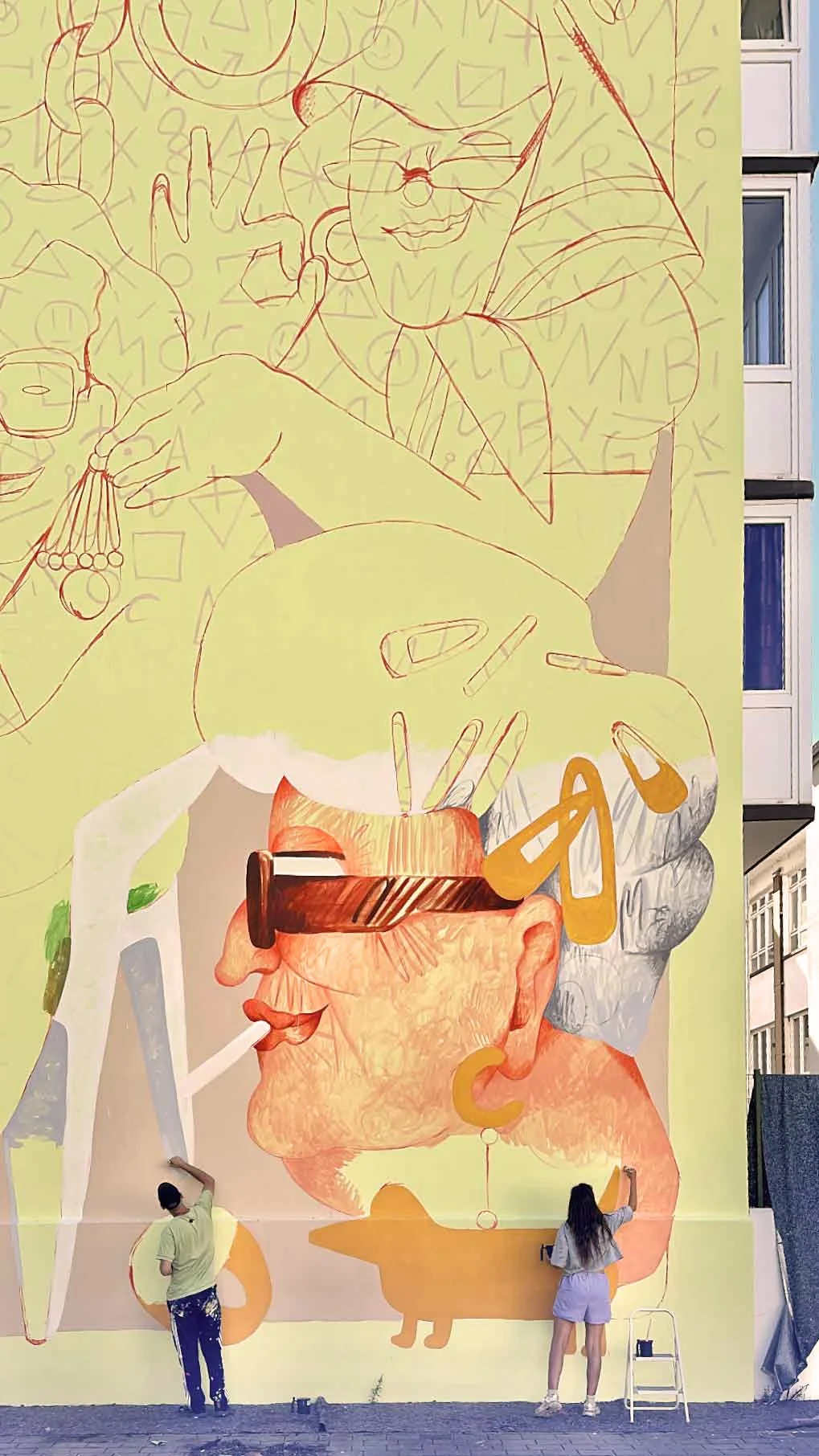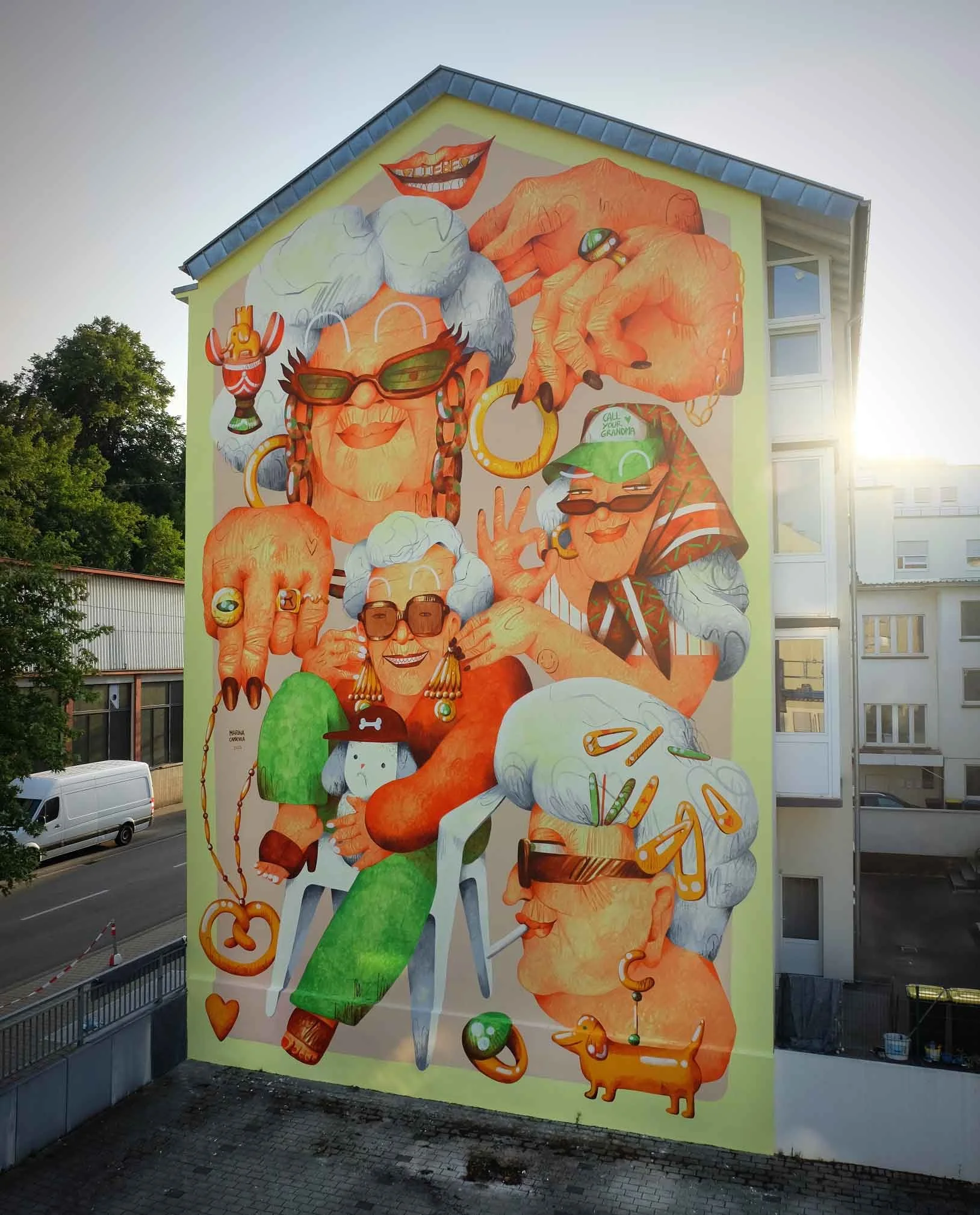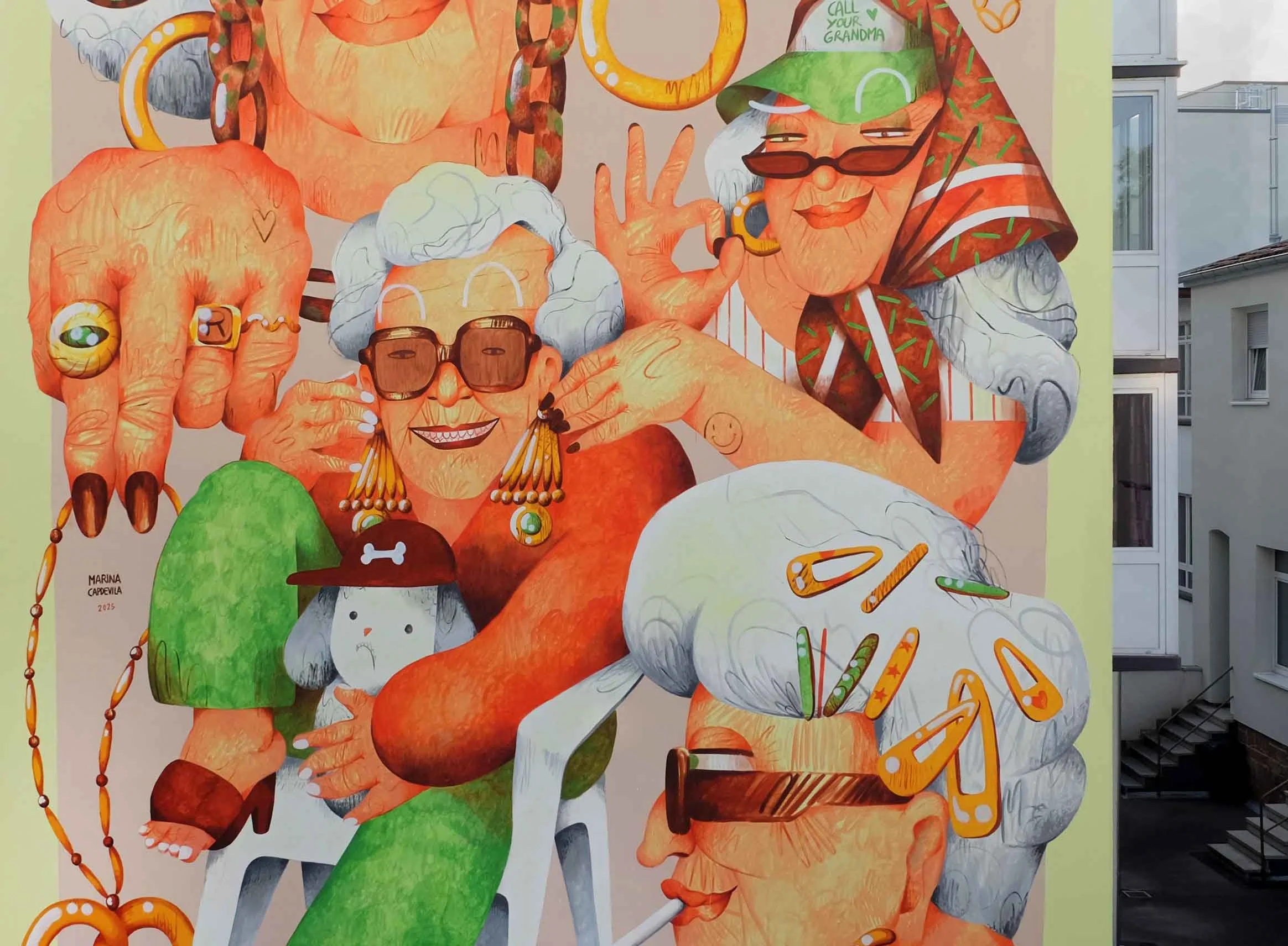 The mural seeks to contribute to the urban fabric with a warm, ironic, and powerful perspective, challenging stereotypes about age, femininity, and the value we place on what (and who) surrounds us. It is playful yet profound: a reminder that the spark does not fade with age; it transforms.