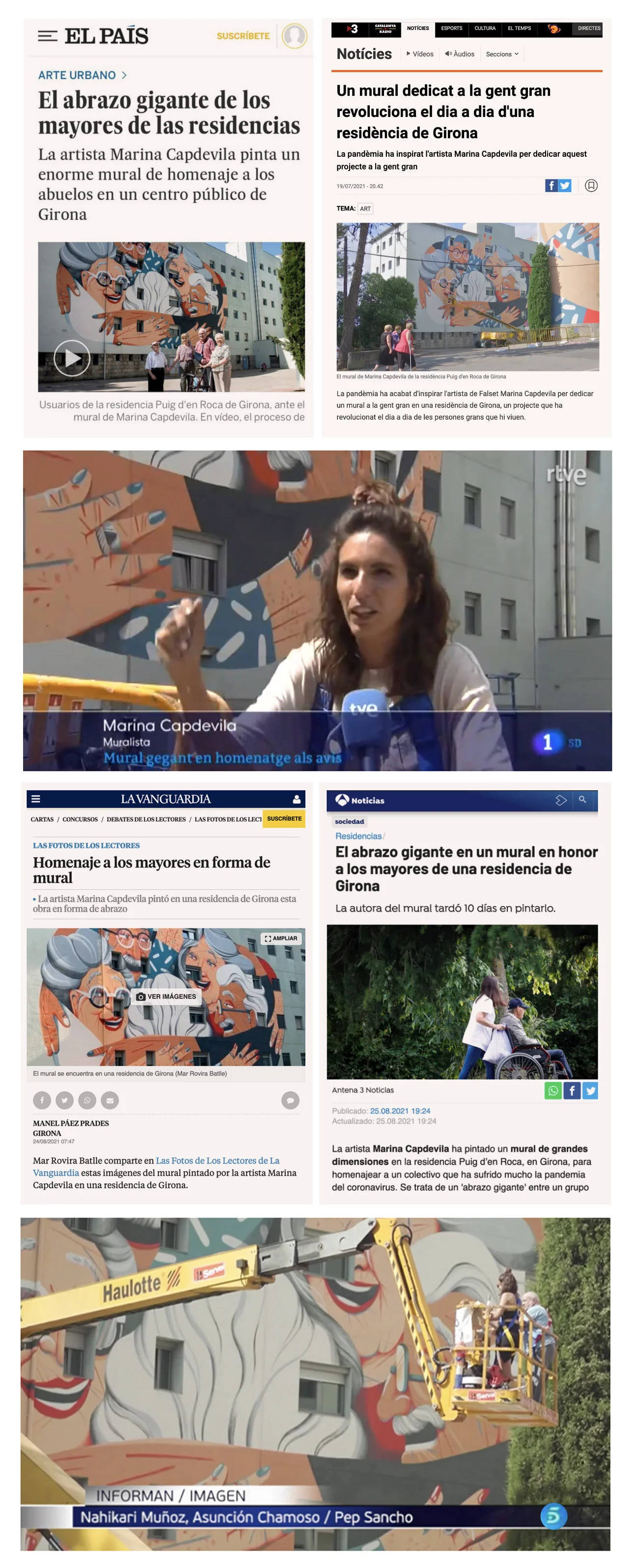 ““Marina Capdevila pays tribute to the strength and vitality of the elderly with a giant hug mural in Girona””